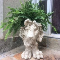 HOMESTYLES 18 in. Antique White Lion Muggly Mascot Animal Statue Planter Holds a 7 in. Pot