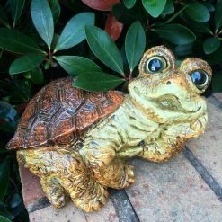 HOMESTYLES 11 in. Flirty the Whistling Turtle Lying with Motion Activated Sound (Whistling) Figurine