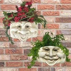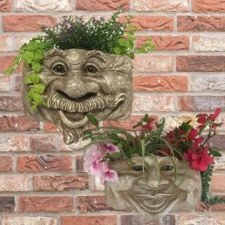 HOMESTYLES 10.5 in. Uncle Nate and Aunt Minnie Stone Wash The Muggly Tree Face Wall Planter