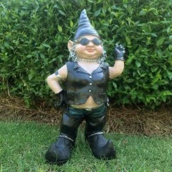 HOMESTYLES 14.5 in. H Peace Sign Biker Dude and Babe Gnome Riding Her White Motorcycle Garden Statue