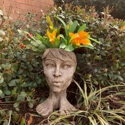 HOMESTYLES 13 in. Stone Wash Ole Salty the Muggly Statue Face Planter Holds a 5 in. Pot