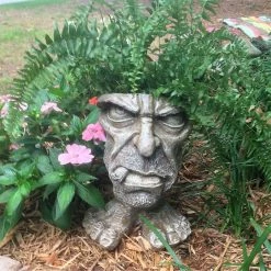 HOMESTYLES 12 in. Stone Wash Uncle Nate the Muggly Statue Face Planter Holds 4 in. Pot