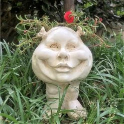 HOMESTYLES 8.5 in. Antique White Sister Suzy Q the Muggly Face Statue Planter Holds 3 in. Pot