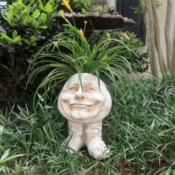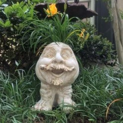 HOMESTYLES 12 in. Antique White Uncle Nate the Muggly Statue Face Planter Holds 4 in. Pot