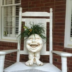 HOMESTYLES 14 in. Antique White Mama Petunia the Muggly Statue Face Planter Holds 6 in. Pot