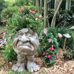 HOMESTYLES 13 in. Stone Wash Ole Salty the Muggly Statue Face Planter Holds a 5 in. Pot