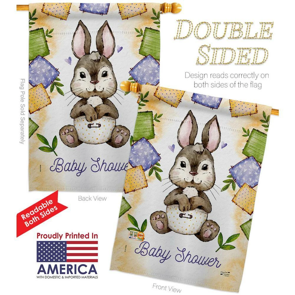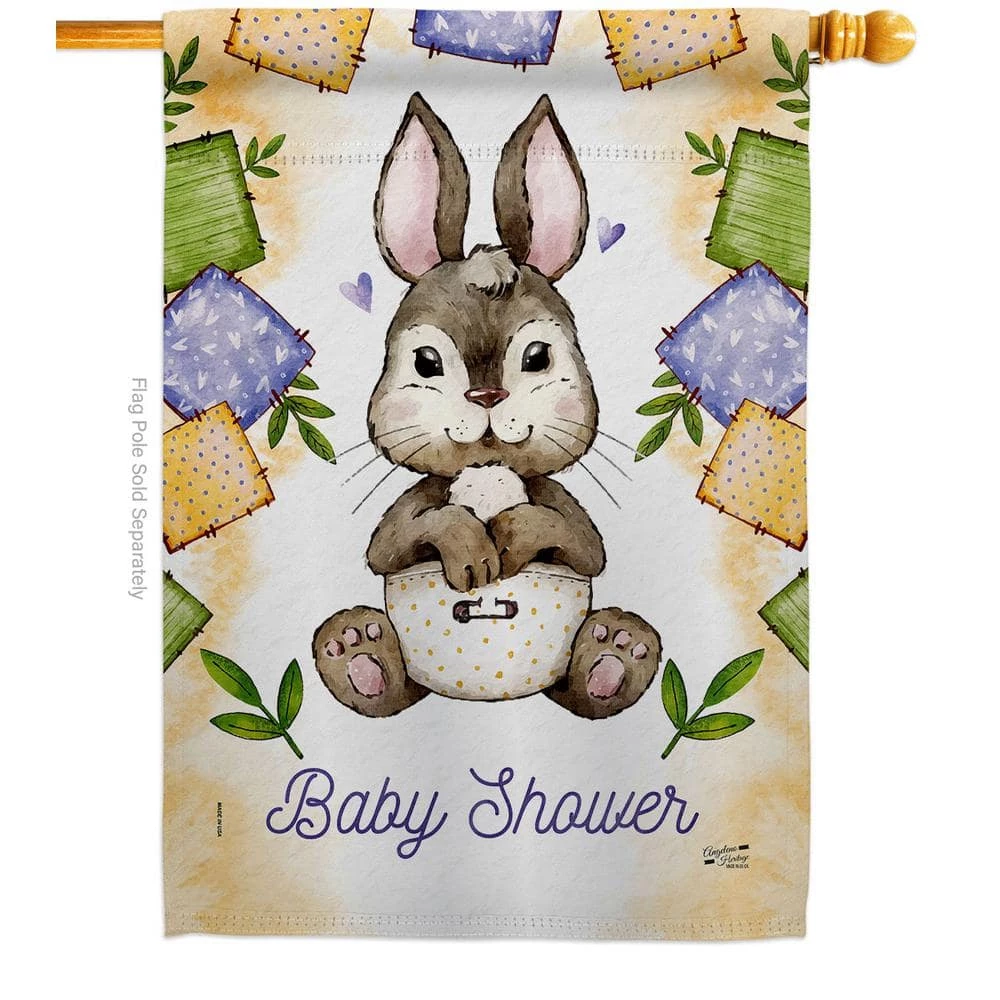 Angeleno Heritage MADE AND DESIGNED LOS ANGELES CALIFORNIA 28 in. x 40 in. Bunny Baby Shower Celebration House Flag Double-Sided Decorative Vertical Flags