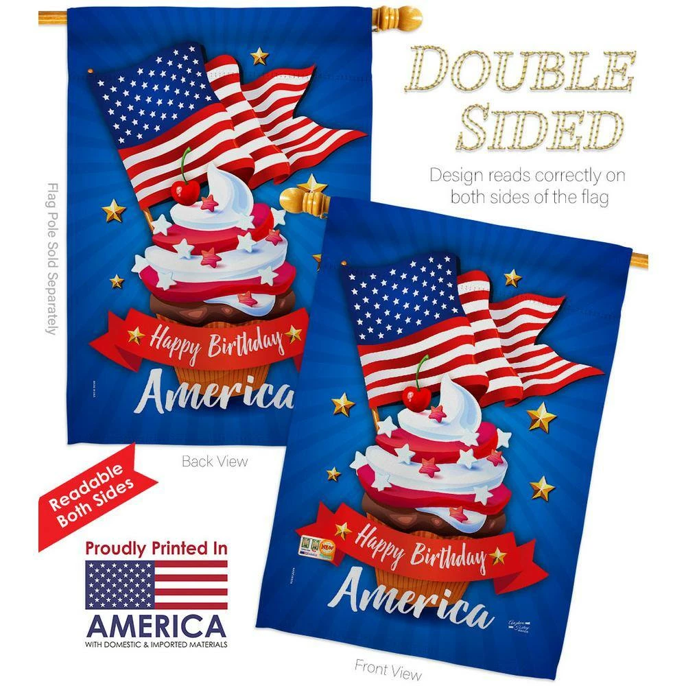 Angeleno Heritage MADE AND DESIGNED LOS ANGELES CALIFORNIA 28 in. x 40 in. Happy Birthday America Patriotic House Flag Double-Sided Decorative Vertical Flags