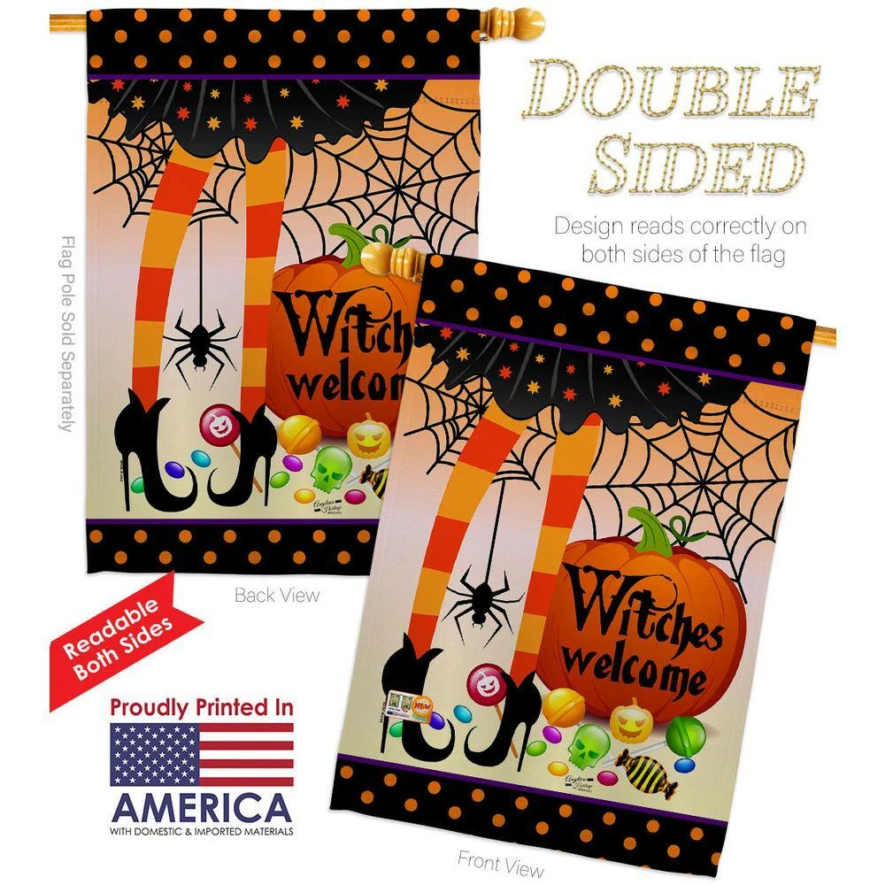 Angeleno Heritage MADE AND DESIGNED LOS ANGELES CALIFORNIA 28 in. x 40 in. Witches Welcome Fall House Flag Double-Sided Decorative Vertical Flags
