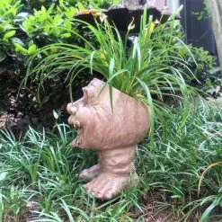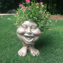 HOMESTYLES 12 in. Stone Wash Uncle Nate and Aunt Minnie the Muggly Face Statue Planter Holds 4 in. Pot (2-Pack)