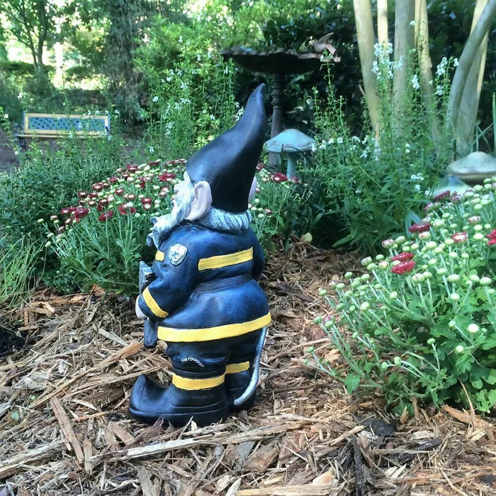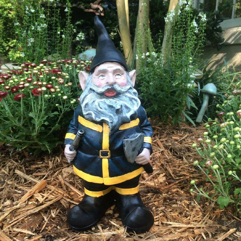 - Nowaday Gnomes – Fireman the Gnome hero reuse firefighter holding a fire hose and axe