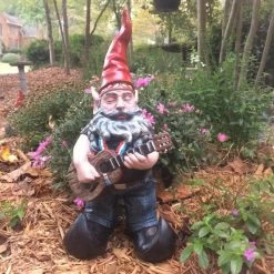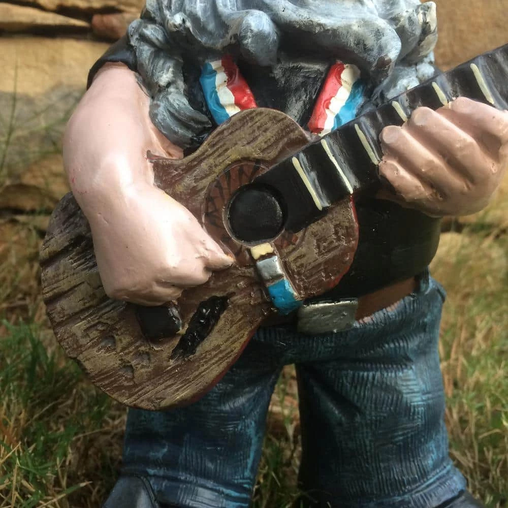 The coolest Country Music Star Gnome Statue around. It is perfect for both indoor and out with her weather resistant and UV protectant finish. Detail from head to toe and front to back. Bring a little love, peace and rockin roll to your home, garden, pool, porch and life.