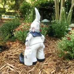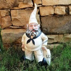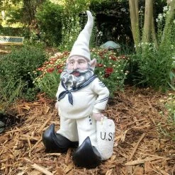HOMESTYLES – Nowaday Gnomes – American Pride Collection- Navy Sailor 14 in. H Military Soldier Gnome is dressed in his white uniform with duffel bag sporting that famous hat and those special shoes that are naturally curved at the toe as he is a gnome, don’t ya’ know, and a Nowaday Gnome to-boot. Legend has it; Nowaday Gnomes occupy a parallel universe to our own, living quietly among us, they have mimicked our evolution throughout time, from scavenging for food with rocks and clubs in the ice-age to shopping and sharing emoji’s on smartphones and tablets today, they have evolved as we have evolved, done everything we have done, coveted everything we have coveted, and enjoy everything we enjoy, especially in. American Pride in. Nowaday Gnomes in. love the to be Military HEROS-especially a Navy Soldier, too which begs the question; who is mimicking whom A whimsical reminder that in. they in. are living among us. Other key features include; made of durable cast resin, hand painted, suitable for indoor and outdoor use, realistic UV resistant color paint finish, great gift for the military lover in your family, work, and neighborhood. Made for both the garden and home decor statue decor. They’re not your garden variety gnomes.
