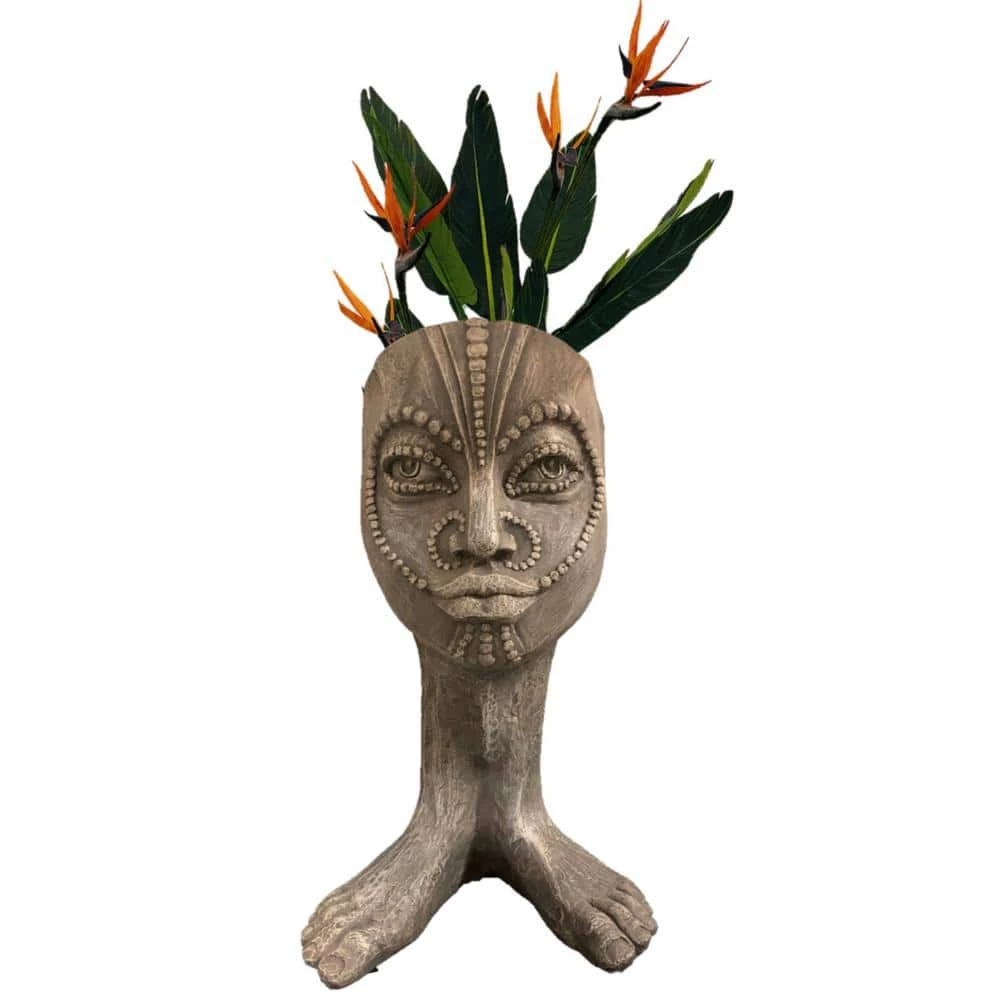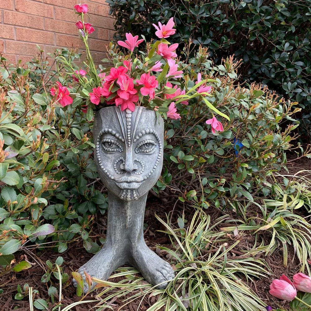 - Combines an unique, humorous statue with a functional planter that holds a 7 in. pot with drain hole