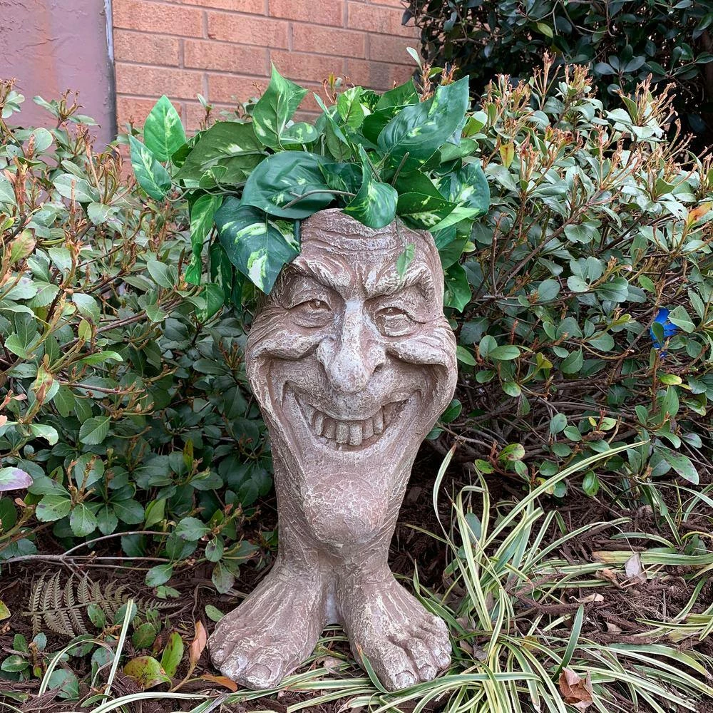 - Combines an unique, humorous statue with a functional planter that holds a 7 in. pot with drain hole