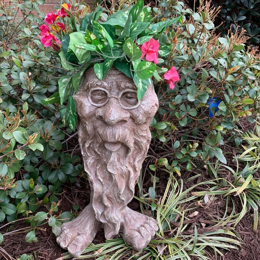 - Combines an unique, humorous statue with a functional planter that holds a 7 in. pot with drain hole