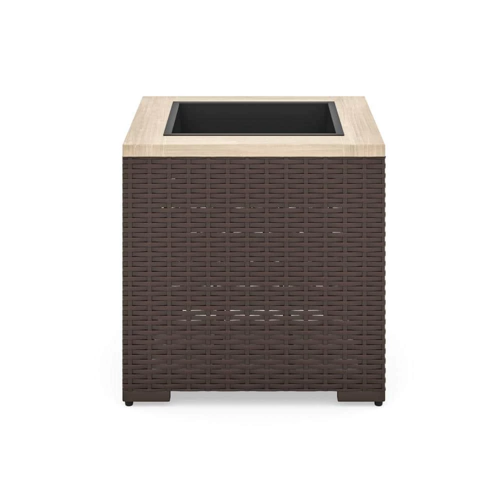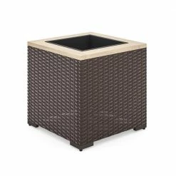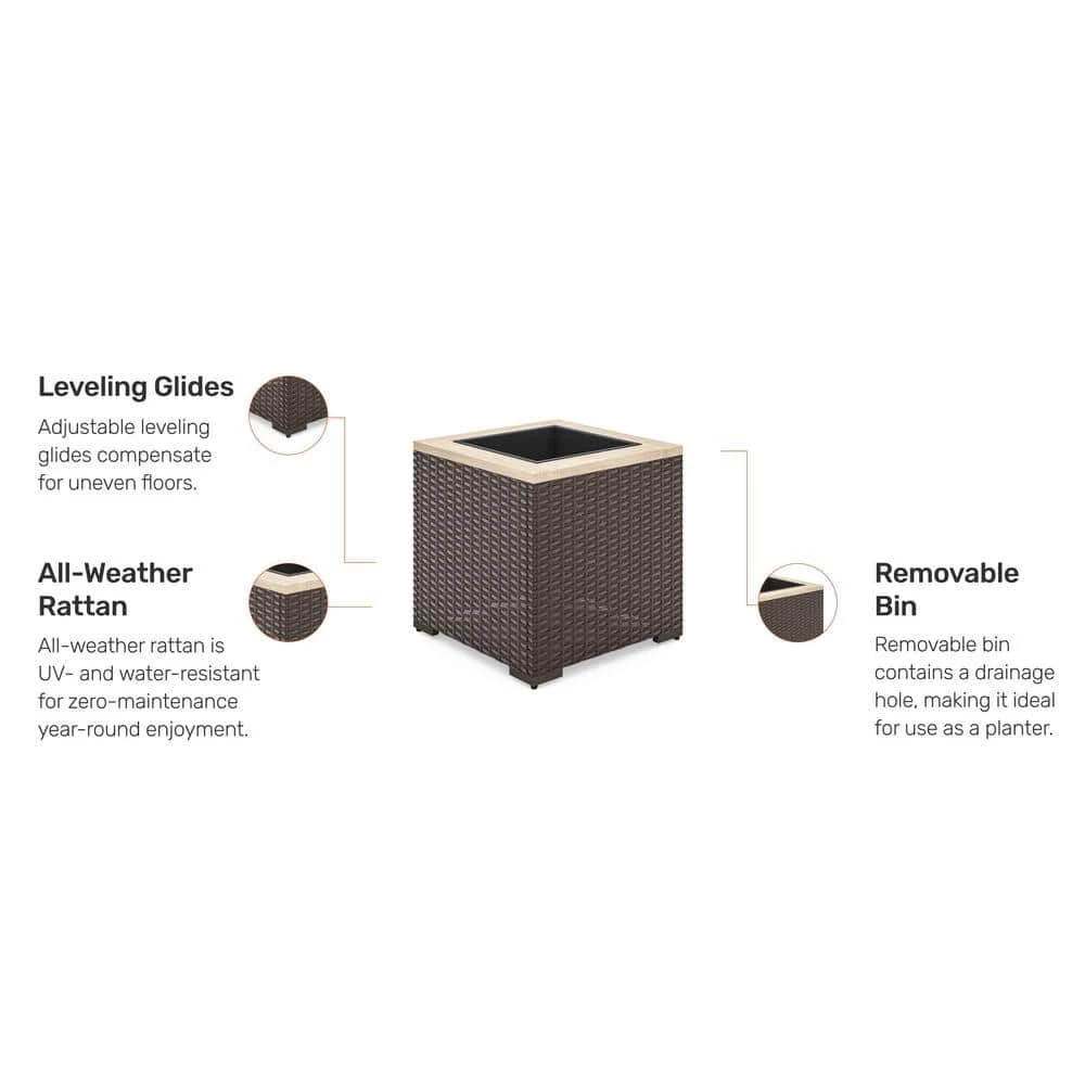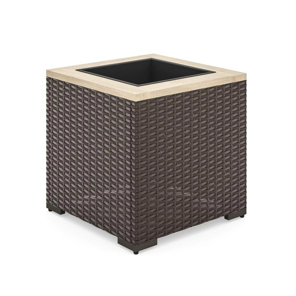 Even outdoor spaces need an extra touch of green and you can add that natural look with this HOMESTYLES Palm Springs Planter. The water-resistant Acacia wood top includes a plastic planter insert with a hole for easy drainage for small plants. Remove the insert to fill with a larger plant. Perfect for indoor or outdoor use, the all-weather rattan is hand-crafted by artisans to deliver solid performance year after year.