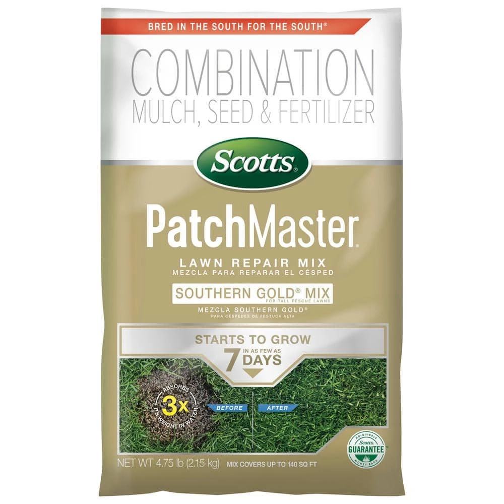 Scotts PatchMaster Lawn Repair Mix helps solve the #1 lawn problem BARE SPOTS. This all-in-1 product contains everything needed to repair bare spots. Pre-mixed and ready to grow, Scotts PatchMaster Lawn Repair Mix contains premium grass seed, 100% recycled mulch and food for new grass. Recycled paper mulch that is biodegradable and helps keep the seed moist and in place during establishment. An essential nutrient seedlings need for fast growth and thick results.