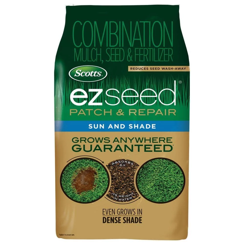 Scotts EZ Seed Patch and Repair Sun and Shade is a revolutionary seeding mix that guarantees seeding success. The unique combination of Scotts high performance seed, premium continuous release lawn food, and Scotts super-absorbent growing material, make it possible for grass to grow anywhere, guaranteed. Scotts EZ Seed now has a tackifier to reduce seed wash away on sloped areas of your lawn. Subject to proper care.