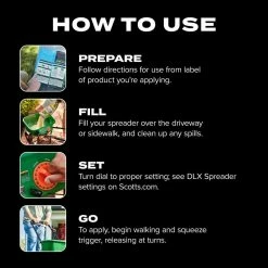 - Use the Scotts Turf Builder EdgeGuard DLX Broadcast Spreader to apply Scotts lawn care products