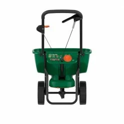 Use the Scotts Turf Builder EdgeGuard DLX Broadcast Spreader to apply fertilizer, grass seed, and other lawn care products. This lawn spreader comes pre-calibrated and ready-to-use, and holds up to 15,000 sq. ft. of Scotts product. When EdgeGuard is engaged, it will block off the right-side of the spreader pattern to prevent product from spreading onto non-lawn areas. Using the Scotts Turf Builder EdgeGuard DLX Broadcast Spreader is simple. To begin, turn rate control dial to the correct setting listed on the back of each Scotts product, pour the product in the hopper, then start spreading. The spreader’s design enhancements feature a curved hopper and dual-bladed agitator for smooth product funneling and consistent coverage. Spreaders provide uniform coverage of granular products; without one, you may end up with uneven coverage of fertilizer or control products that can result in uneven feeding, weed, disease, or insect control. Scotts spreaders can also be used to distribute salt on walkways and driveways.