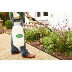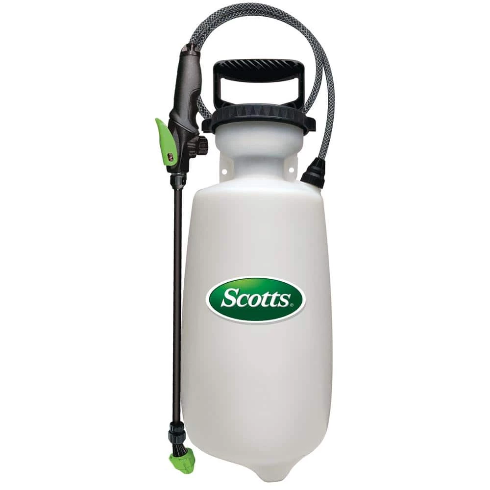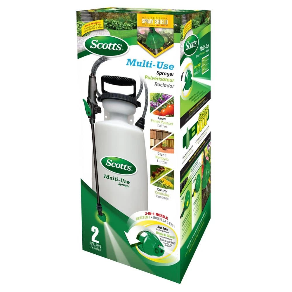 The new Scotts 2 Gal. Multi-Purpose sprayer is perfect for most household needs, including both indoor and outdoor applications. Our exclusive All-In-One Nozzle makes switching spray patterns a breeze. Simply twist the nozzle to select one of 3 spray pattern settings – “Stream” for spot treating weeds and penetrating cracks where insects hide, “Cone” for watering or fertilizing plants, and “Fan” to quickly and easily cover large areas like decks, siding, and concrete walkways. No more pieces and parts to switch out and keep track of. Backed by a 5-year warranty, this Scotts sprayer is built to last, easy to use, and our most versatile sprayer.