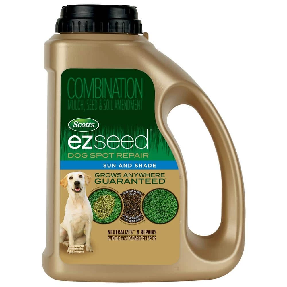 - Scotts EZ Seed Dog Spot Repair Sun and Shade has a special salt neutralizer formula that minimizes the effects of salts from dog urine and repairs damage