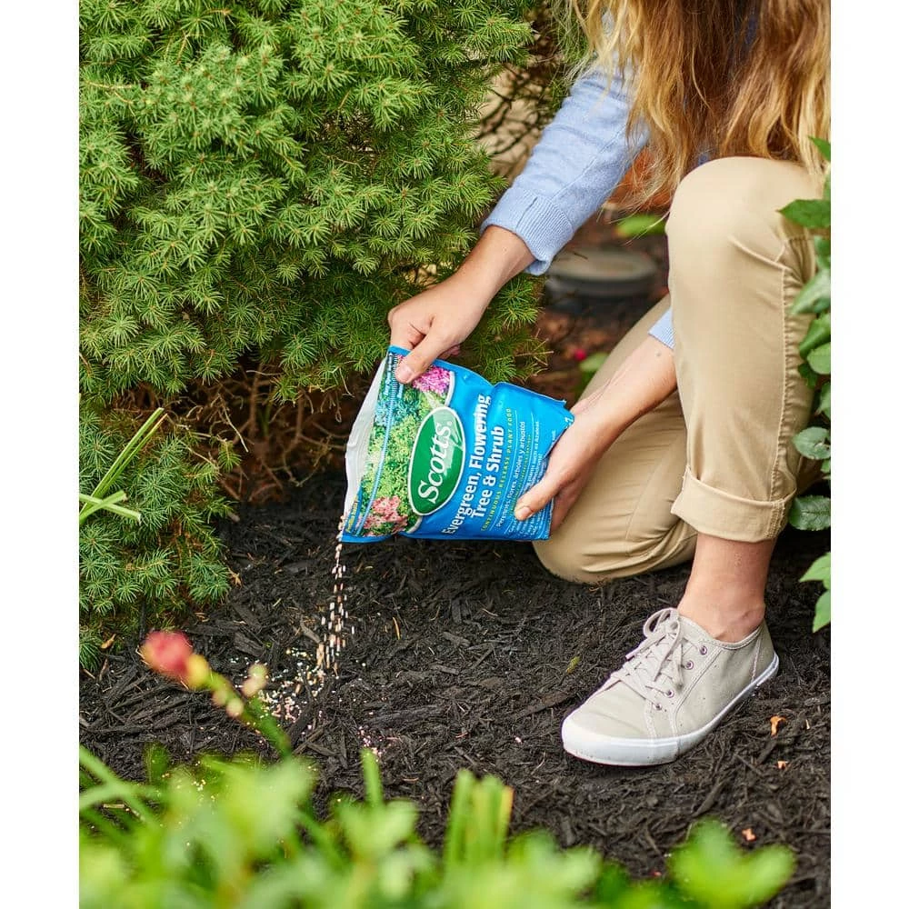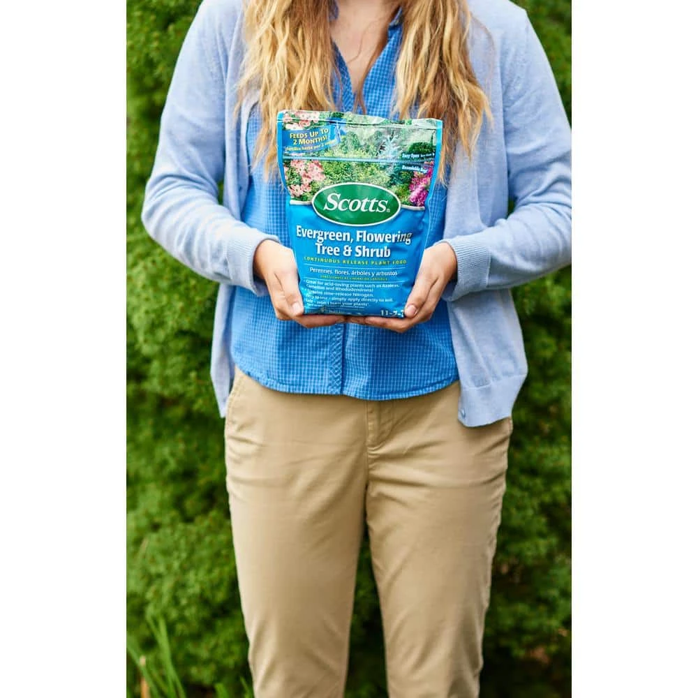 Encourage vigorous root growth and lush foliage in trees and shrubs with Scotts Evergreen, Flowering Tree and Shrub Continuous Release Plant Food. The formula is excellent for evergreens, dogwoods, hydrangeas, magnolias, and many other acid-loving trees and shrubs like azaleas, camellias, and rhododendrons. Simply apply the easy-to-use plant food directly to the soil-and, the formula is safe, so you can trust it won’t burn your plants when you use it as directed.