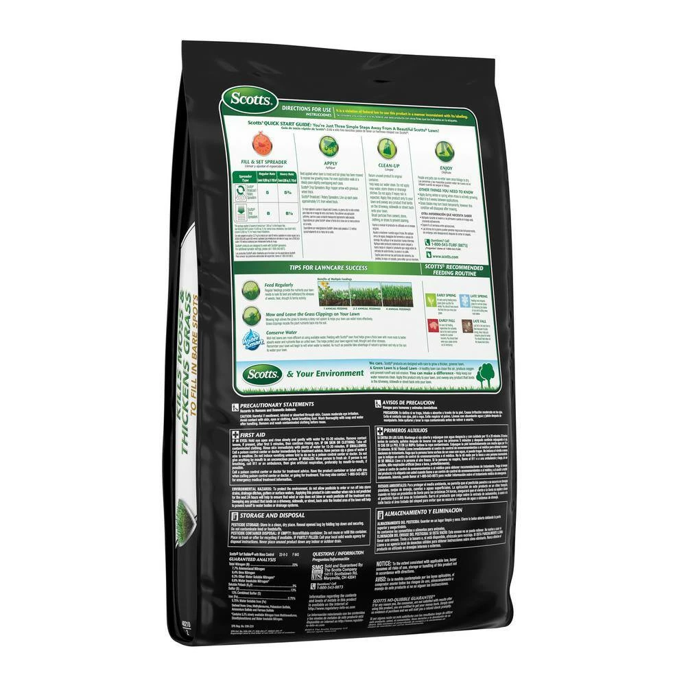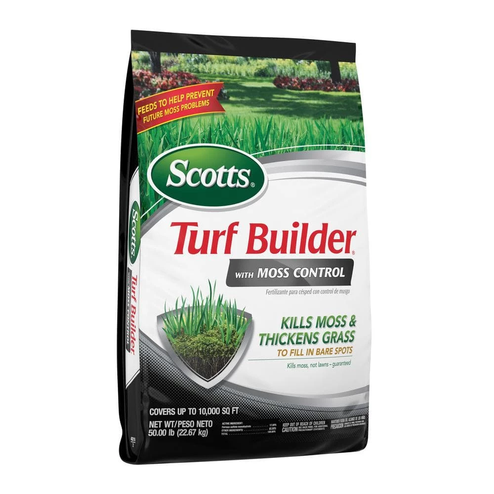 Scotts Turf Builder with Moss Control kills moss-guaranteed. At the same time, it feeds your lawn, thickening grass to prevent any future moss problems. Apply Scotts Turf Builder with Moss Control wherever moss is actively growing, and say hello to a beautiful, green lawn.