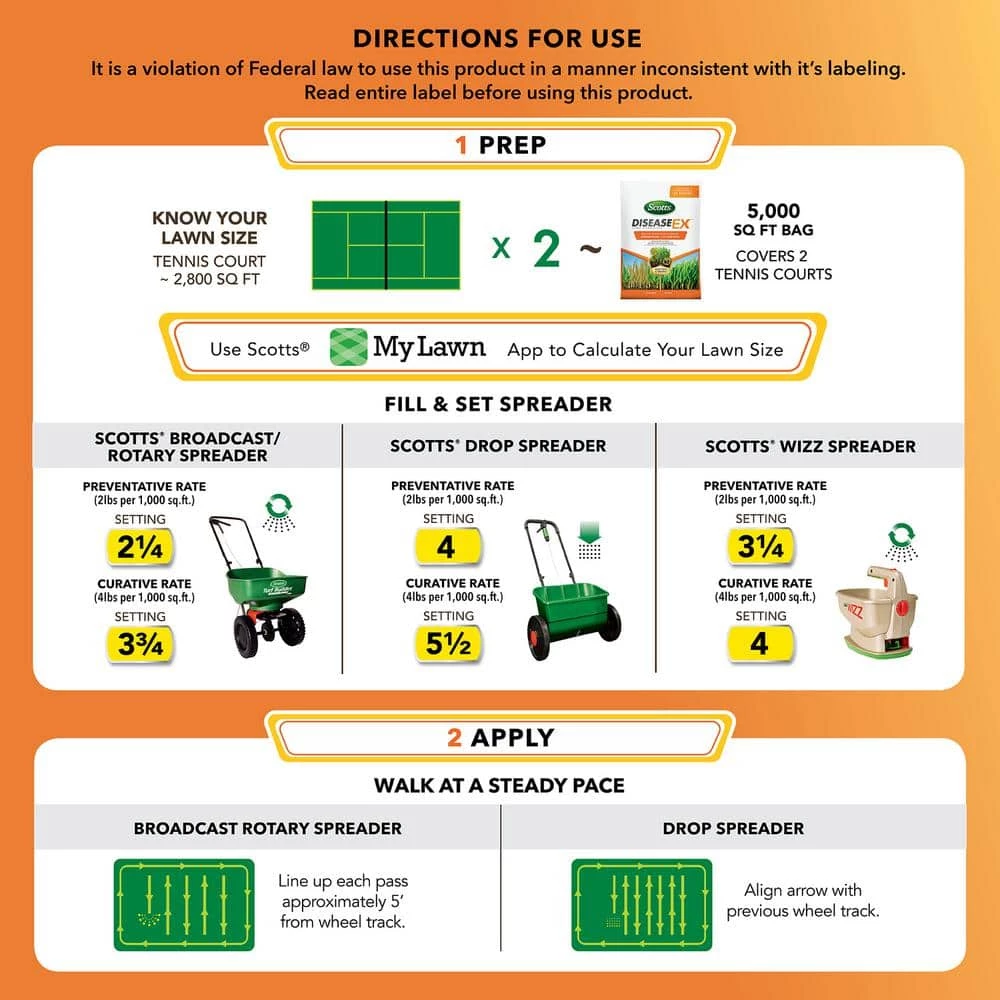 Scotts DiseaseEx Lawn Fungicide offers a formula to cover a wide range of problem lawn diseases. This new product is fast acting and continues to control lawns diseases for up to 4 weeks. Scotts DiseaseEx controls common diseases like: Brown Patch, Stem and Stripe Rust, Red Thread, Powdery Mildew, Pythium, Southern and Typhula Blight, Pink Patch, Nercrotic Ring Spot, Summer Patch, Yellow Patch and more.