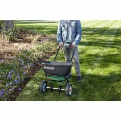 Scotts Elite Spreader is our most advanced and accurate spreader yet. Dual rotors provide increased accuracy and a 6 ft. spread pattern, which means you make less passes across your yard, saving you time. The large hopper holds up to 20,000 sq. ft. of Scotts lawn product. The ergonomic handle provides comfort, while featuring a smartphone holder. The 10 in. tires are foam filled, so they won’t ever go flat.