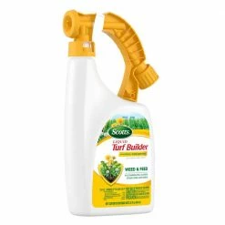 Scotts Liquid Turf Builder with Plus 2 Weed Control gives your lawn a quick boost of nitrogen while controlling weeds. Simply attach hose and spray. Kills dandelions, clover and other Listed lawn weeds. See label for Listed weeds.