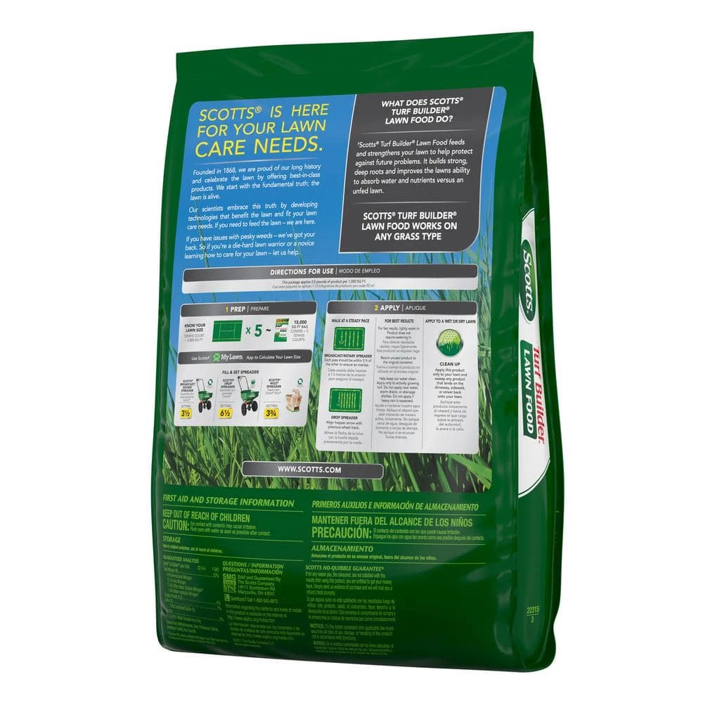 Are you looking to build a thick, green lawn, Use Scotts Turf Builder Lawn Food formulated with the All-In-One Particle to provide an even greening and feeding. Using Scotts Turf Builder Lawn Food thickens your grass to crowd out new weeds. It also feeds and strengthens your lawn to help protect it against future problems. Apply Scotts Turf Builder Lawn Food any time, during any season.