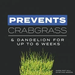 - Does not contain grass seed; it prevents bothersome weeds like dandelions and crabgrass for up to 6-weeks without harming your new grass