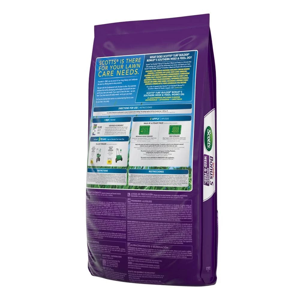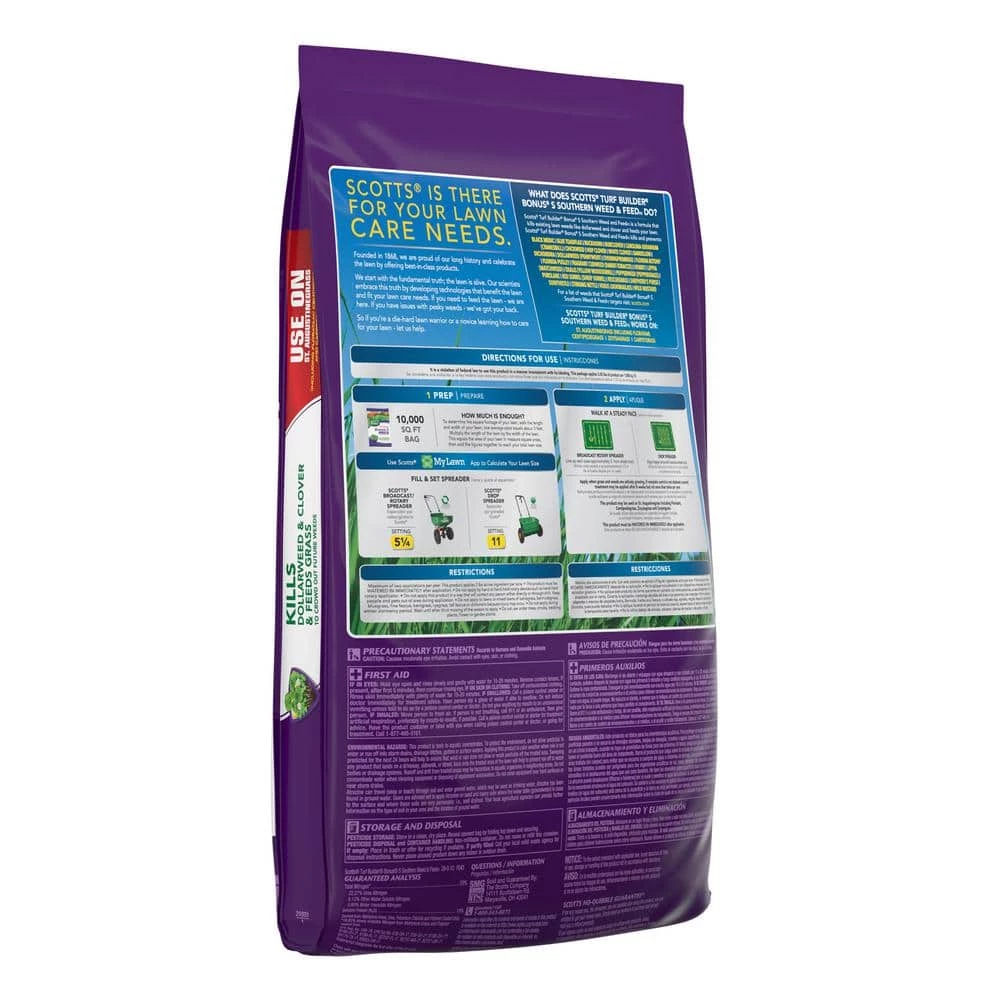 - Scotts Turf Builder bonus S southern weed and feed F2 fertilizes to green your lawn