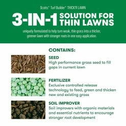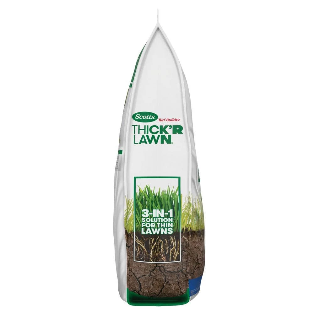 Scotts Turf Builder Thick’R Lawn Sun and Shade has everything you need to help turn weak, thin grass into a thick, green lawn. With this 3-in-1 solution get up to a 50% thicker lawn with just one application (subject to proper care)! THICK’R Lawn contains soil improver for enhanced root development, seed to fill gaps with new grass, and fertilizer to feed new grass and thicken and green existing turf. This product is intended for use on an entire lawn and can be applied easily with a Scotts spreader. Results may vary based on current condition of lawn.